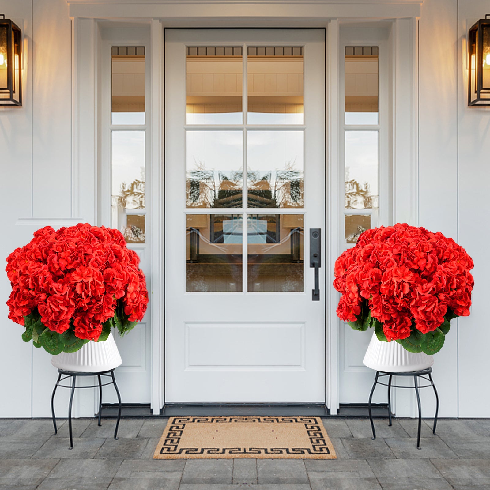 Package: Each set includes 6 lush bundles of high-quality outdoor artificial geraniums, providing a full and natural appearance that enhances any indoor or outdoor decor effortlessly.