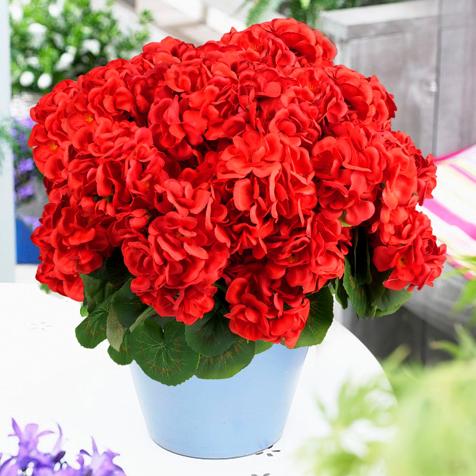 Premium Quality Materials: Crafted with silk flower heads and leaves, along with durable plastic stems, these faux geraniums are UV-resistant and long-lasting, ensuring they maintain their fresh look year-round.